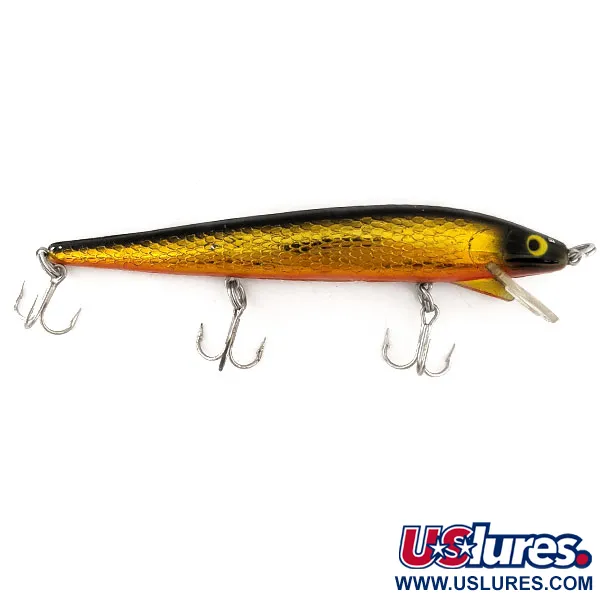 Mit einem Gewicht von exakt 12 g (2/5 oz) besticht dieser Jerkbait durch ein detailreiches Gold-Schuppen-Finish auf seiner Länge von 12 cm (4 3/4"). Dieser Smithwick Suspending Rattlin’ Rogue 12, geführt unter der Artikelnummer 11379, bietet eine kontrastreiche Optik mit schwarzem Rücken, goldfarbenen Flanken und einem leuchtend orangefarbenen Bauch. Hergestellt in den USA, umfasst die Ausstattung drei scharfe, silberfarbene Drillinge und ein internes Rasselsystem. Als schwebendes Modell (Suspending) ist er so konzipiert, dass er neutral im Wasser steht; er erreicht beim Werfen Tiefen von 0,3–2 m und beim Schleppen bis zu 3–4 m. Der Zustand dieses Exemplars wird mit 5/5 bewertet, da es unbenutzt ist und keinerlei Gebrauchsspuren an der klaren Tauchschaufel oder den markanten gelben Augen mit schwarzen Pupillen aufweist. Ein kleines silbernes Logo auf dem Kopf unterstreicht die Authentizität dieses klassischen amerikanischen Kunstköders.