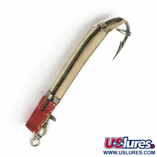 Mit einer Länge von 4,5 cm (1 3/4") ist dieser weiß-rote Fliegenruten-Köder ein Klassiker von South Bend aus den 1940er Jahren. Unter der Artikelnummer 24087 wiegt der Trix-Oreno leichte 2 g (1/16 oz) und wurde speziell entwickelt, um Fliegenfischern das Angeln in tieferen Gewässerschichten zu ermöglichen. Das Design zeichnet sich durch einen schlanken, elfenbeinfarbenen Körper aus, der mit Metallbändern am Haken fixiert ist und durch einen markanten roten Kopf ergänzt wird. Bei einem Zustand von 4/5 weist der Köder nur leichte Altersspuren auf, wobei die Lackierung und die Metallteile gut erhalten sind. Ursprünglich war dieser Köder von South Bend dafür gedacht, quer oder flussabwärts in Fließgewässern ausgeworfen zu werden, wo er natürlich absinkt, um Unterwasserlebewesen zu imitieren. Dieses Verhalten erwies sich als ideal, um Forellen zu Saisonbeginn zu erreichen oder größere Fische während der Sommerhitze in tiefen Wasserzonen zu überlisten. Zur Ausstattung gehören ein kleiner Drahtwirbel an der Aufhängung und ein einzelner, nach oben gerichteter Haken am Heck.