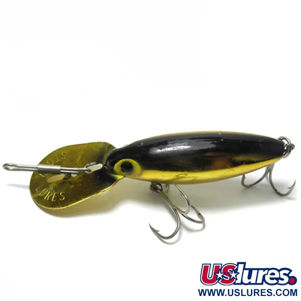 Die goldene Metallbeschichtung verleiht diesem 5 cm langen Vintage-Fundstück eine zeitlose Ausstrahlung, besonders in Kombination mit dem kontrastreichen schwarzen Streifen auf dem Rücken. Dieser Storm Hot'N Tot mit dem Produktcode 0104 steht für die Fertigungsqualität der Thin Fin-Serie, die ursprünglich in den USA hergestellt wurde. Mit einem Gewicht von 6,5 g ist der Wobbler mit einer markanten Metalltauchschaufel ausgestattet, die für Stabilität beim Schleppangeln oder Driften in verschiedenen Strömungen sorgt. Die gelben Augen mit den kräftigen schwarzen Pupillen bilden einen deutlichen Fixpunkt auf dem reflektierenden goldenen Körper. Sowohl die Drillinge als auch der Schnappverschluss der Schaufel sind aus langlebigen Komponenten gefertigt, was dem 4/5-Zustand dieses Exemplars entspricht. Während viele spätere Modelle auf Kunststoffkomponenten umgestellt wurden, bleibt die integrierte Metallschaufel dieses Modells ein Favorit für Sammler, die das traditionelle Design und das spezifische Laufverhalten schätzen.