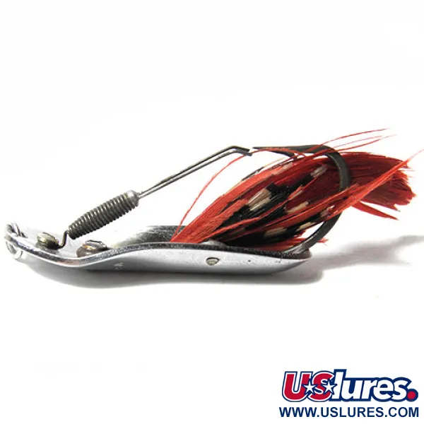 Museumsarchiv: Pflueger Vintage Weedless CHUM Blinker, Nickel / Rote Federn, 8g, #0157
