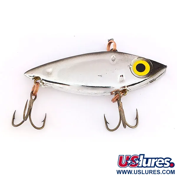 Mit einer Länge von 6 cm (2 1/4") bietet dieser verchromte, sinkende Vibrationsköder trotz seines kompakten Gewichts von 10 g (1/3 oz) eine beachtliche Präsenz unter Wasser. Der in den USA von Wahoo hergestellte WAZP Rattler (Artikelnummer 9577) nutzt eine lippenlose Konstruktion mit integrierten Rasseln, die sowohl beim Werfen als auch beim Schleppen vielseitig einsetzbar ist. Ein kontrastreiches gelbes Auge mit tiefer schwarzer Pupille hebt sich von einem dunklen Rücken ab, der in polierte Silberseiten übergeht. Die Ausstattung umfasst zwei bronzierte Drillingshaken, die mit Sprengringen befestigt sind. Die oben angebrachte Schnuröse ermöglicht eine variable Tiefenführung, um Fischarten wie Zander, Hecht oder Barsch zu erreichen. In einem mit 5/5 bewerteten Zustand ist das Exemplar außergewöhnlich gut erhalten und weist einen brillanten Glanz auf.