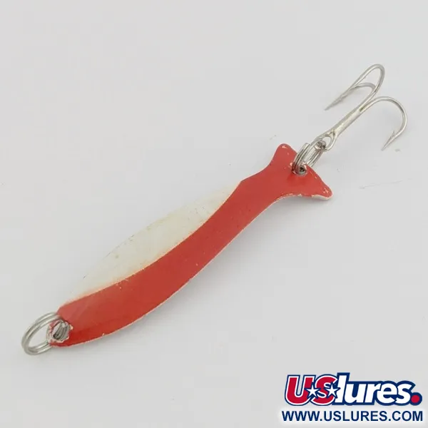 Die rot-weiße Lackierung auf einer vernickelten Basis verleiht dieser Worth Fly Rod Demon ein klassisches, gut sichtbares Profil. Der gestanzte Metallkörper mit einer Länge von 4 cm (1 1/2") und einem Gewicht von 1,5 g (3/64 oz) verfügt über eine breite Oberfläche, die speziell für das Schleppfischen entwickelt wurde. Sie bleibt auch bei niedrigen Geschwindigkeiten aktiv und eignet sich zum Angeln auf Hecht in flacher Vegetation oder zum Aufspüren von Seeforellen in tiefen Thermoklinen unter Verwendung von Monofilschnur, Leadcore oder Downrigger-Systemen. Das Lackfinish und die Vernickelung sind im Zustand 4/5 und bewahren den ursprünglichen Glanz, den man von einem Vintage-Köder von Worth erwartet. Dieses Modell wird unter dem Produktcode 24497 geführt.