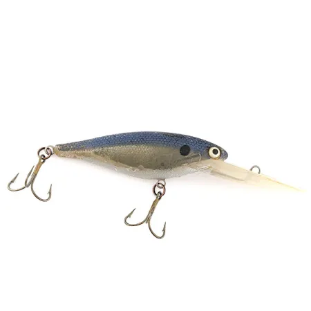 Mit einer Länge von 7,5 cm (3 Zoll) ist der Yo-Zuri Crankin Shad TMB ein bewährter Tiefläufer in klassischem japanischen Design. Dieses 11 g (2/5 oz) schwere Modell besticht durch ein blau-silbernes Schuppendekor, ergänzt um einen markanten dunklen Fleck im Kiemenbereich. Dank der großen, transparenten Tauchschaufel erreicht der Köder beim Werfen Tiefen von 2 bis 3 m, während er beim Schleppangeln bis auf 5 m abtauchen kann. Die Ausstattung umfasst Drillingshaken, die sichtbare Gebrauchsspuren aus vergangenen Einsätzen aufweisen, was dem Zustand von 3/5 entspricht. Der blau-violette Rücken geht fließend in ein strukturiertes Schuppenmuster an den Seiten über, abgerundet durch gelbe Augen mit dunklen Pupillen. Die gesamte Konstruktion entspricht den hohen Qualitätsstandards der in Japan gefertigten Yo-Zuri Hardcore & Bass Serie.